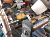 Here's a few images showing how I connected the cable clutch. First step was to thread (1/4-28) the crimped on 'button' that retains the clutch cable in a stock 5.0 style quadrant. Then we simply attached a heim with a stud attachment (normally used for race car throttle linkage). At that point we drilled and tapped the already modified (I welded 2.5" or so of 1/4" thick steel above the pivot point) pedal to accept the 1/4-28 stud off the heim. The final picture above shows the loosely installed assembly, and no, the cable isn't normally like that. It actually pulls quite straight and true.